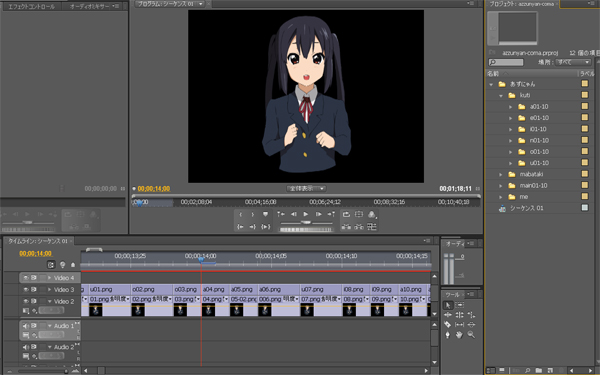 アニメキャラの管理をプレミアで配置させてプロジェクト保存したのを