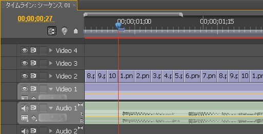 メインで使う動画を下層に補正をつける動画を上層に配置し